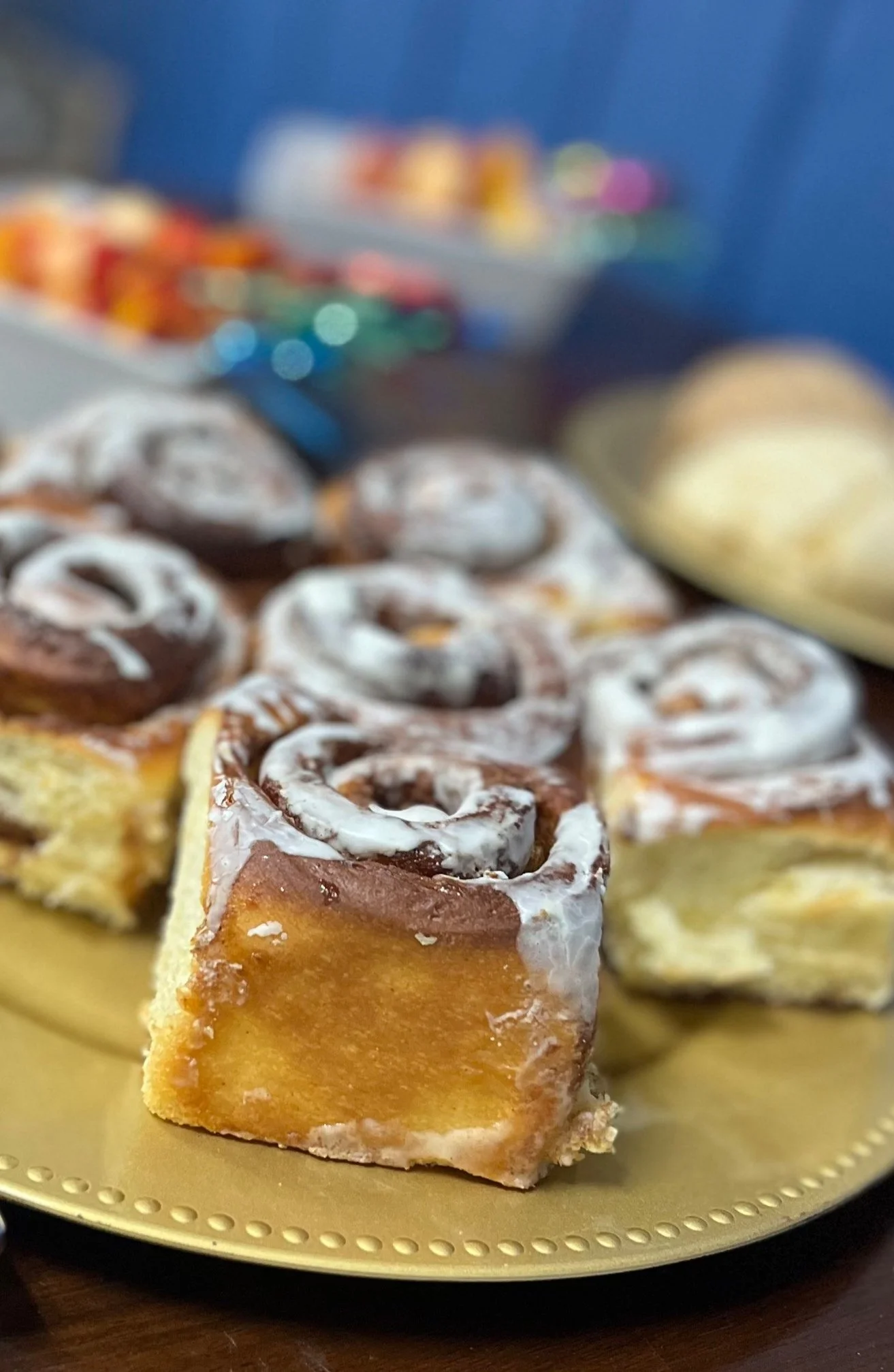 With our Deluxe Display, you get an upscaled catered morning setup, crafted to excite your taste buds. Experience the warmth of good food and community, all at a great price. Choose 2 from: Cinnamon Rolls, Assorted Pastries, Cinnamon rolls, or Bagels